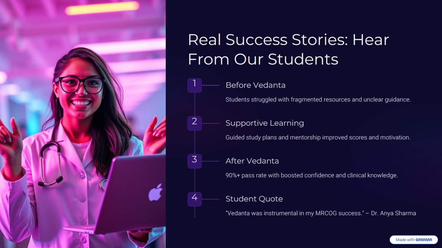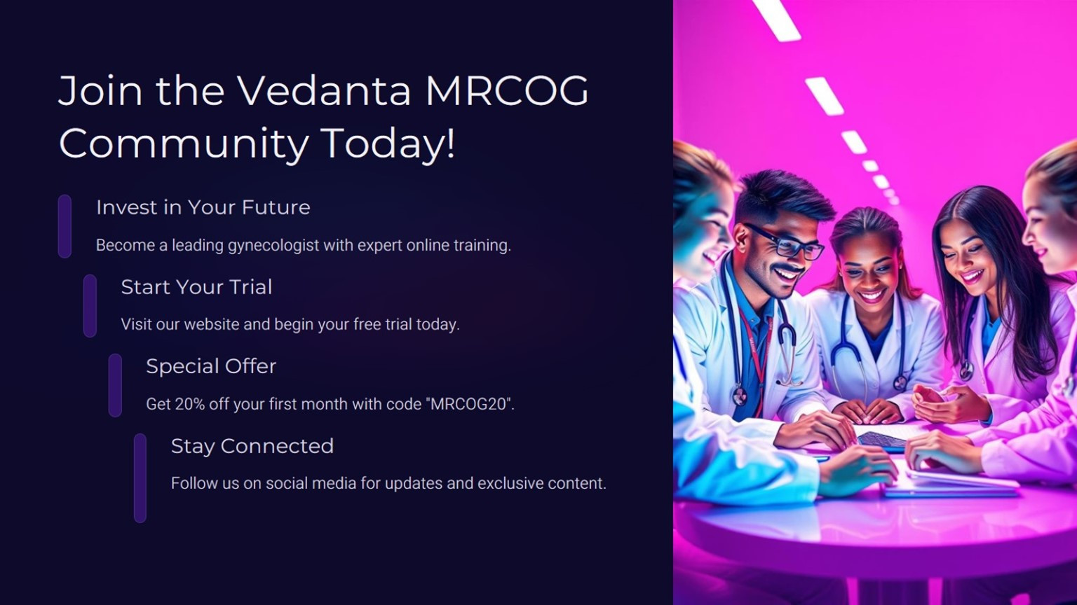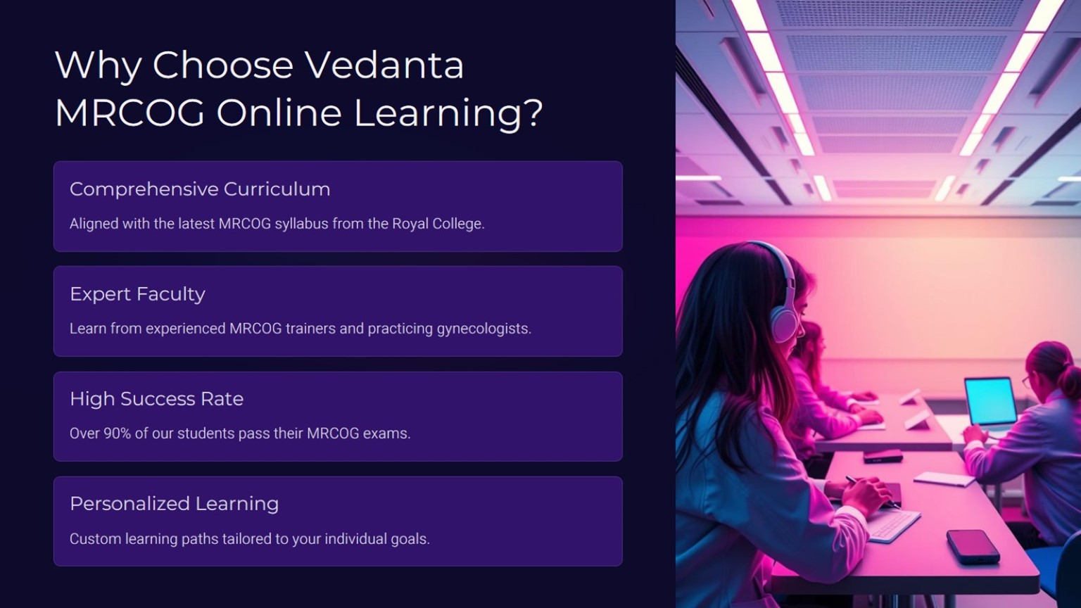 • Vedanta's online learning portal for Membership of the Royal College of Obstetricians and Gynecologists (MRCOG)