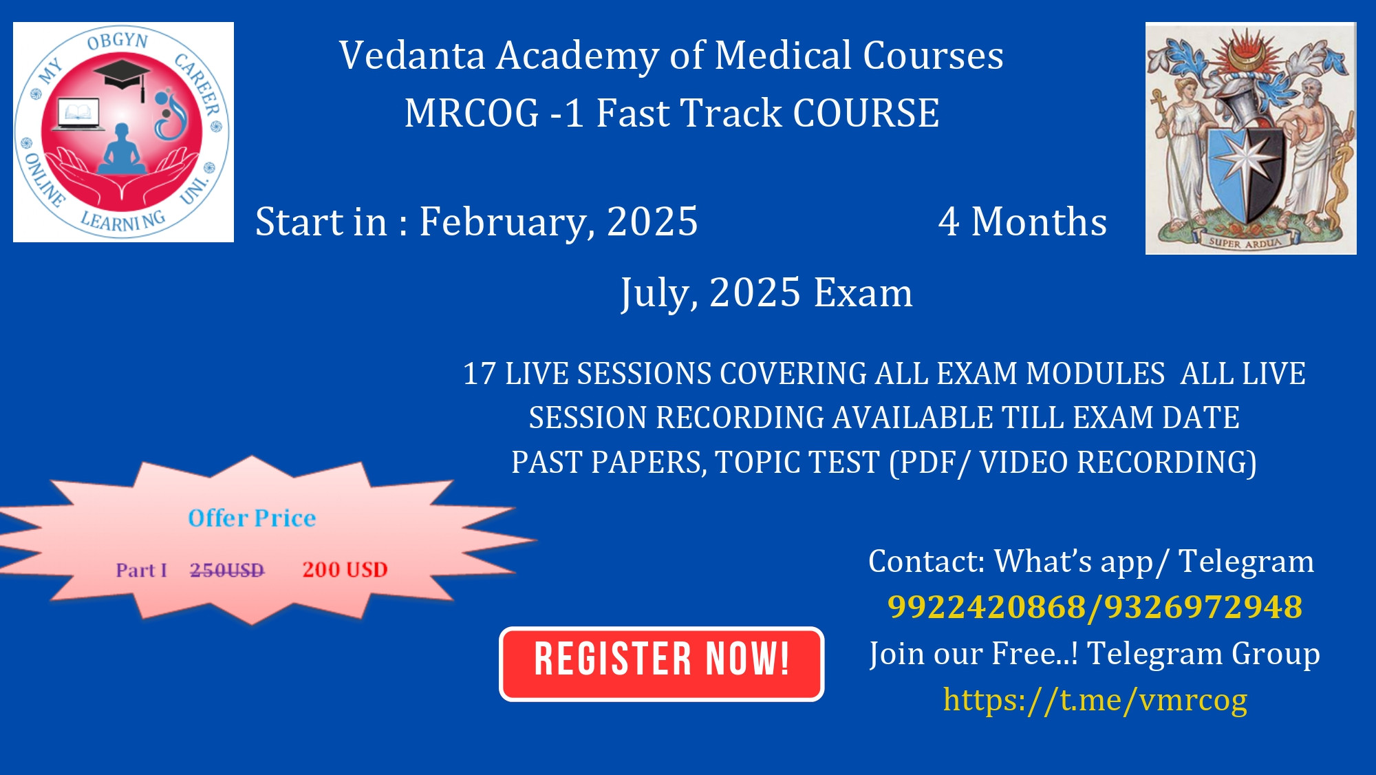 Our Course by Vedanta MRCOG - Monday, 3 February 2025, 7:10 PM Number of replies: 0 Vedanta MRCOG_1 Fast Track Course Permalink